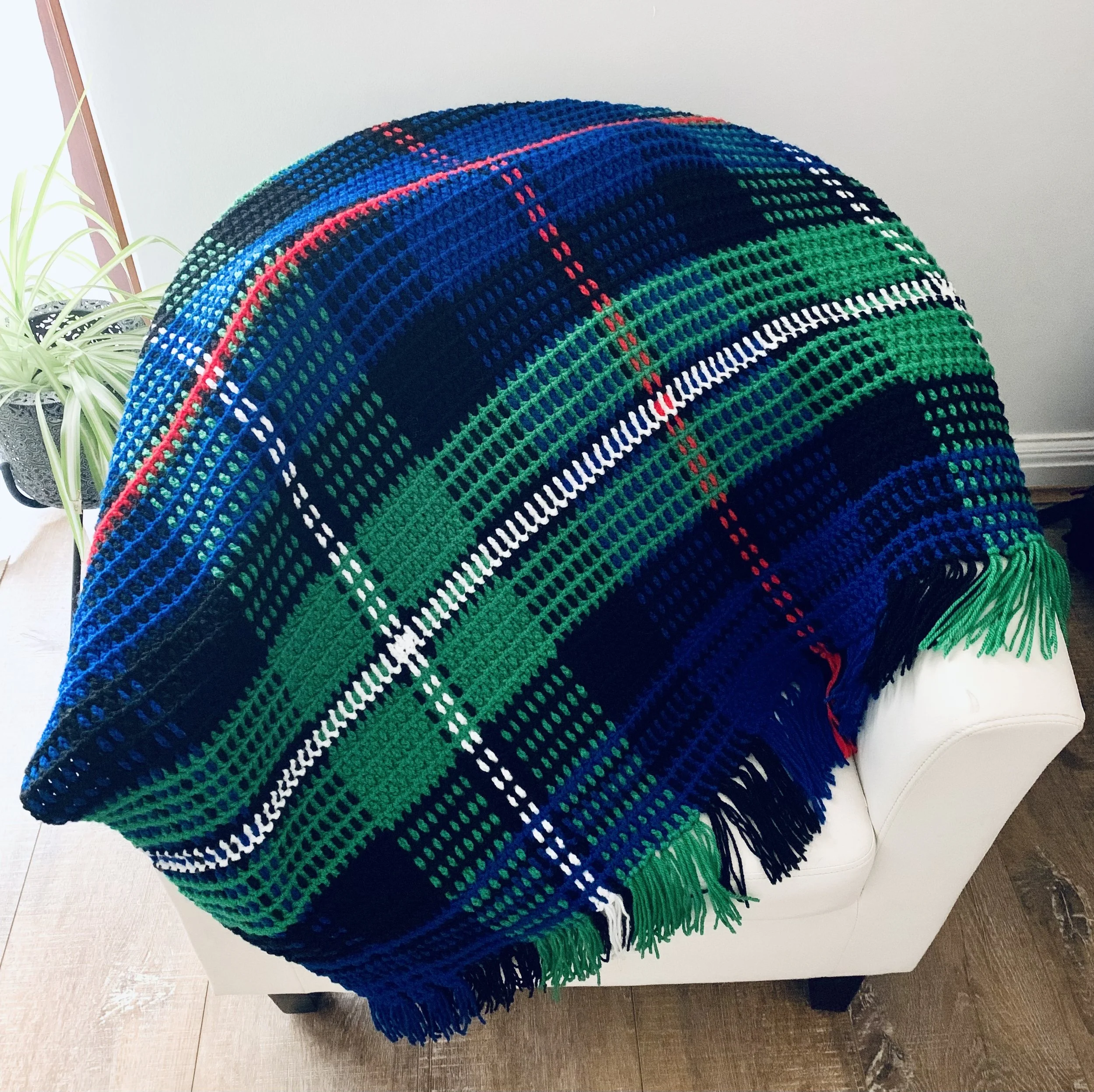 I first learnt about this technique from the beautiful Jenny King Designs and her crocheted tartan throws. I made a love throw for a friend of mine who has Scottish heritage. I thoroughly enjoyed this technique and decided to have a go at designing something for myself. The weaving method is super easy and the throw grows really quickly which is a bonus.