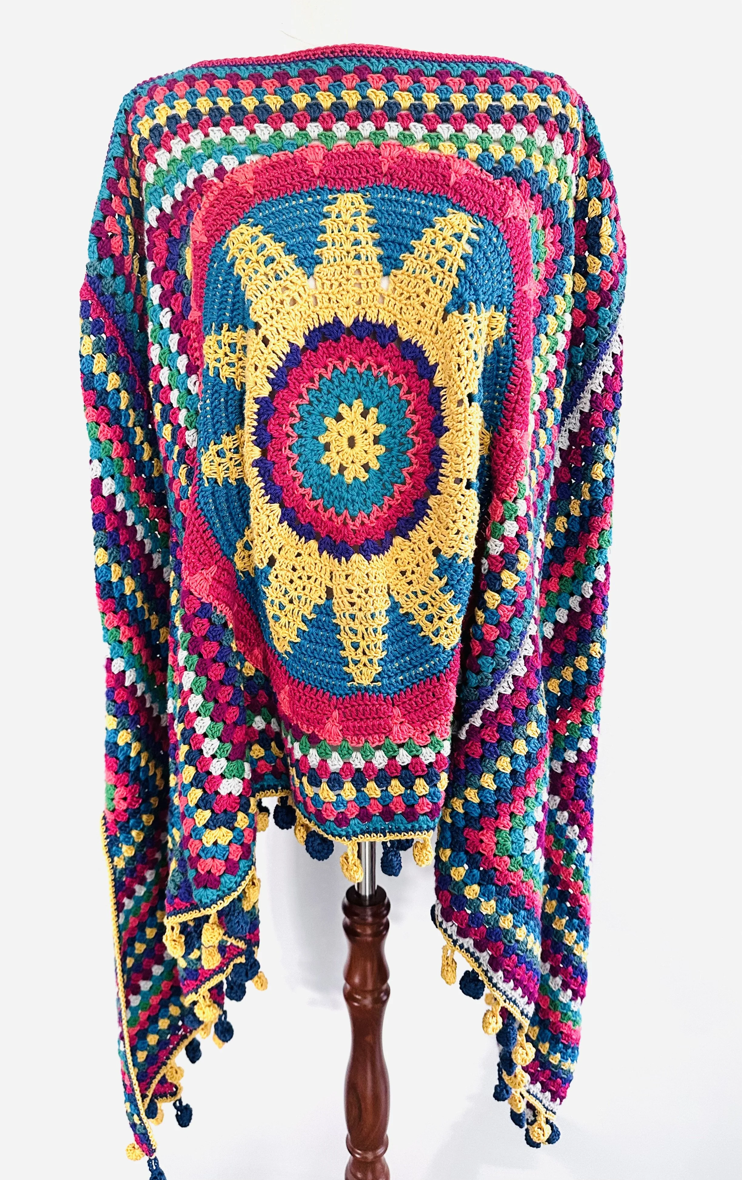 The colourful crocheted poncho is from Scheepjes pattern designer Cara Medus. It was a joy to make :D